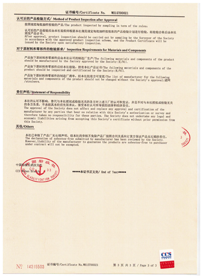 認(rèn)可后的產(chǎn)品檢驗應(yīng)由本社驗船師根據(jù)本社規(guī)范規(guī)定每批抽樣按批準(zhǔn)的產(chǎn)品檢驗計劃進行檢驗,經(jīng)檢驗合格后由本社頒發(fā)產(chǎn)品證書。
