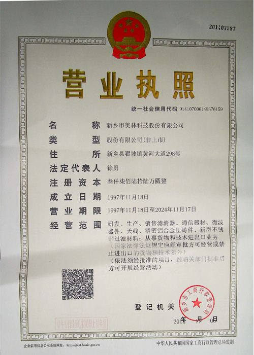 2015年11月6號新鄉(xiāng)美林液壓附件有限責(zé)任公司正式更名為新鄉(xiāng)市美林科技股份有限公司
